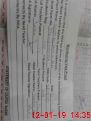 | Attendance Register | Head Teacher | MEA with School | Visit Proof |
