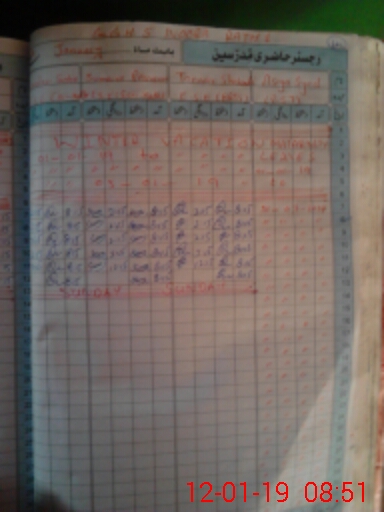| CNIC | Full Name | Designation | R/C | Absence During Last Calender Month |