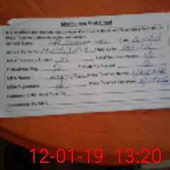 | Monitoring Date: 12-01-2019 | Start Time: 12-01-2019 12:50 PM | End Time: 12-01-2019 01:46 PM | Name of MEA: Am**** Al**** | |