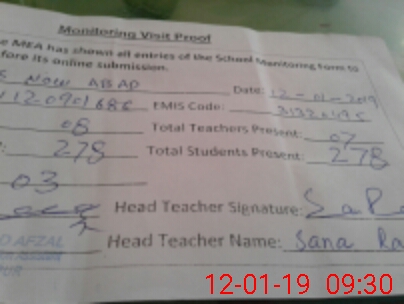 | Attendance Register | Head Teacher | MEA with School | Visit Proof |