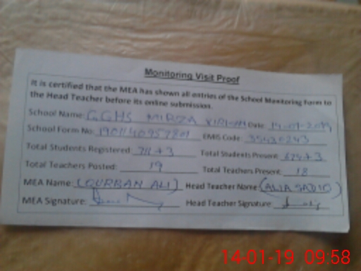 | EMIS Code: 35430243 | Name of School: GGHS MIRZA VIRKAN | |||