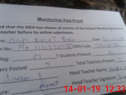 | Attendance Register | Head Teacher | MEA with School | Visit Proof |