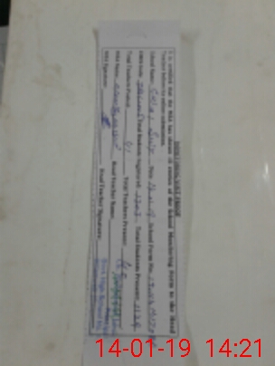 | Monitoring Date: 14-01-2019 | Start Time: 14-01-2019 01:36 PM | End Time: 14-01-2019 02:23 PM | Name of MEA: MU**** HU**** | |