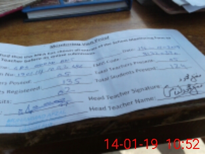 | Attendance Register | Head Teacher | MEA with School | Visit Proof |