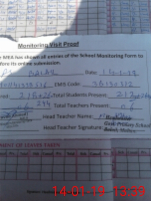 | Certified that this School was Inspected by the Undersigned MEA/DMO Today and the Information Stated Above is as Per Record. | |||||