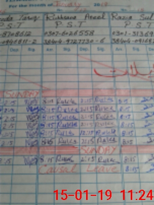 | CNIC | Full Name | Designation | R/C | Absence During Last Calender Month |