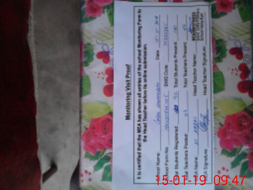 | School Visited by School Health & Nutrition Supervisor (No. of Visits) | 1 | Name1: | M SHOIB | Name2: | NIL |
