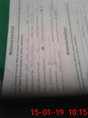 | Monitoring Date: 15-01-2019 | Start Time: 15-01-2019 09:26 AM | End Time: 15-01-2019 10:20 AM | Name of MEA: Za**** Hu**** | |