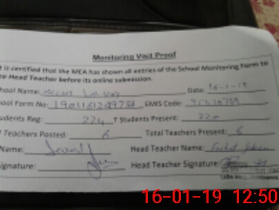 | Certified that this School was Inspected by the Undersigned MEA/DMO Today and the Information Stated Above is as Per Record. | |||||