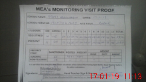 | Attendance Register | Head Teacher | MEA with School | Visit Proof |