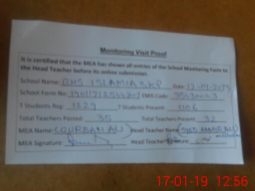 | EMIS Code: 35430043 | Name of School: GHS ISLAMIA SHEIKHUPURA | |||