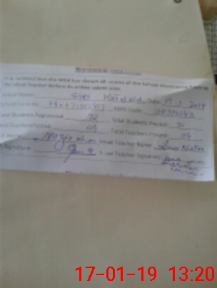 | Certified that this School was Inspected by the Undersigned MEA/DMO Today and the Information Stated Above is as Per Record. | |||||