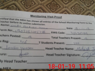 | Attendance Register | Head Teacher | MEA with School | Visit Proof |
