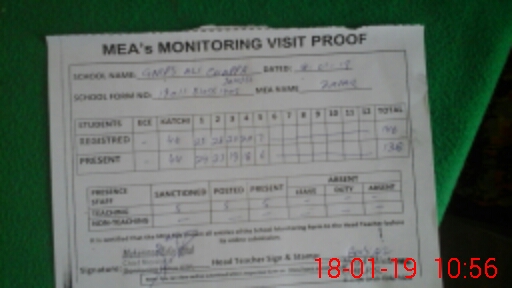 | Attendance Register | Head Teacher | MEA with School | Visit Proof |