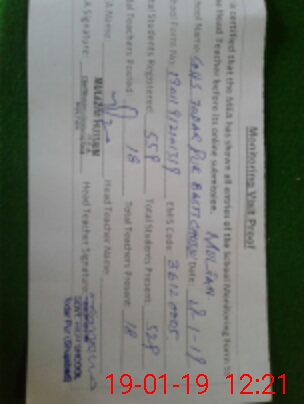 | Certified that this School was Inspected by the Undersigned MEA/DMO Today and the Information Stated Above is as Per Record. | |||||