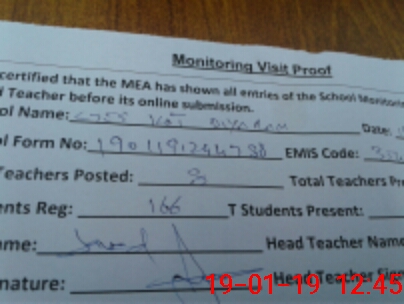 | Attendance Register | Head Teacher | MEA with School | Visit Proof |