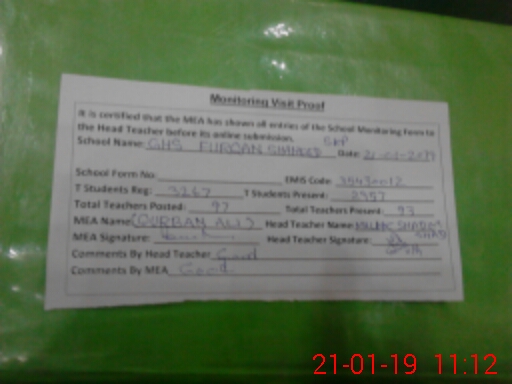 | EMIS Code: 35430012 | Name of School: GOVT. FURQAN SHAHEED HIGH SCHOOL SHEIKHUPURA | |||