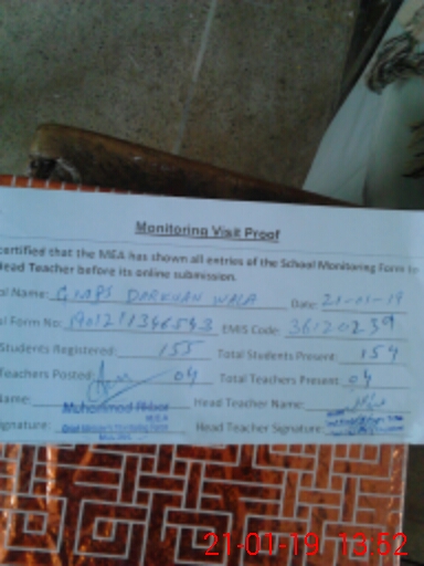| EMIS Code: 36120239 | Name of School: GMPS DARKHAN WALA | |||