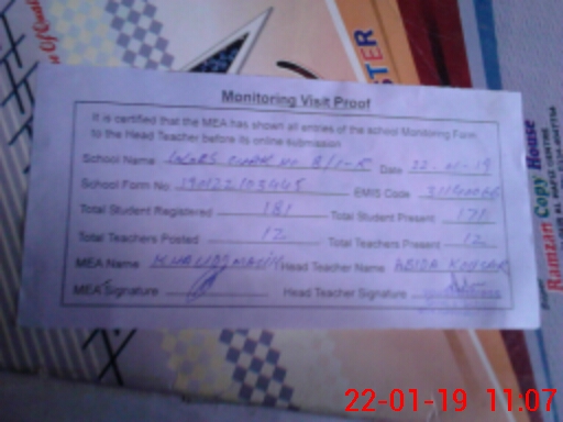 | Certified that this School was Inspected by the Undersigned MEA/DMO Today and the Information Stated Above is as Per Record. | |||||