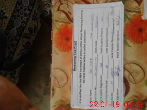 | School Visited by School Health & Nutrition Supervisor (No. of Visits) | 1 | Name1: | REHANA SHARIF | Name2: | NIL |