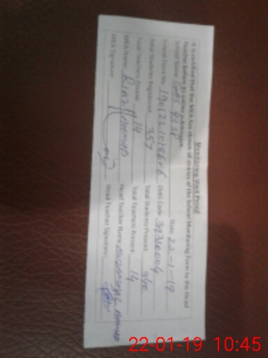 | Attendance Register | Head Teacher | MEA with School | Visit Proof |