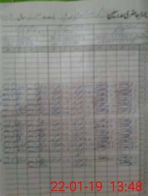 | CNIC | Full Name | Designation | R/C | Absence During Last Calender Month |