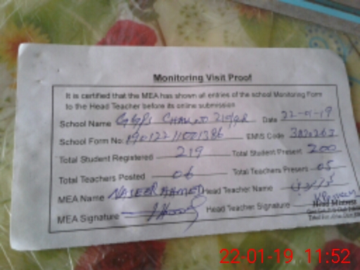 | Certified that this School was Inspected by the Undersigned MEA/DMO Today and the Information Stated Above is as Per Record. | |||||