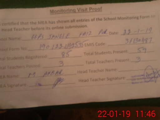 | EMIS Code: 36130487 | Name of School: GGPS JANGLE FAIZ PUR | |||