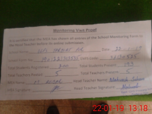 | Certified that this School was Inspected by the Undersigned MEA/DMO Today and the Information Stated Above is as Per Record. | |||||