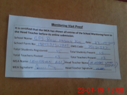 | EMIS Code: 35430537 | Name of School: GPS DERA NASEER DIN | |||