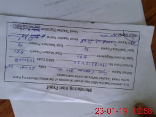| Attendance Register | Head Teacher | MEA with School | Visit Proof |