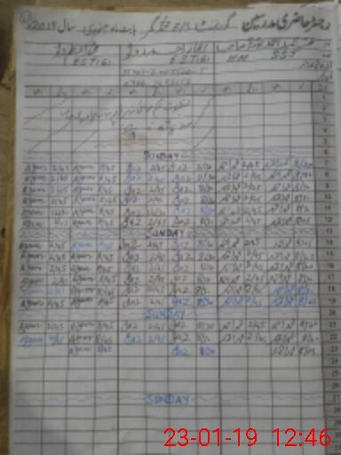 | CNIC | Full Name | Designation | R/C | Absence During Last Calender Month |