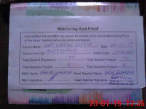 | Attendance Register | Head Teacher | MEA with School | Visit Proof |