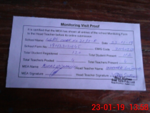 | Attendance Register | Head Teacher | MEA with School | Visit Proof |