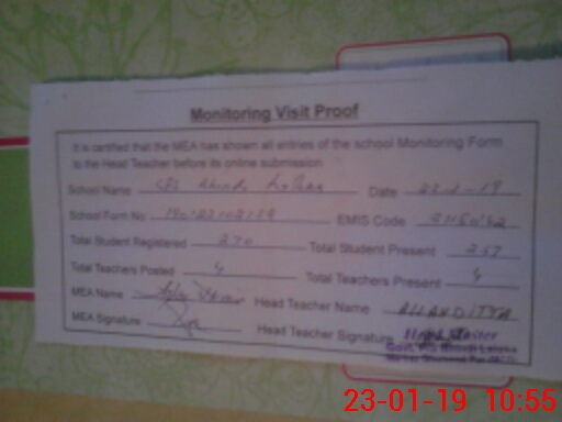 | Certified that this School was Inspected by the Undersigned MEA/DMO Today and the Information Stated Above is as Per Record. | |||||