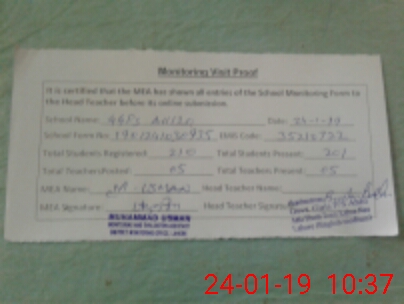 | Certified that this School was Inspected by the Undersigned MEA/DMO Today and the Information Stated Above is as Per Record. | |||||