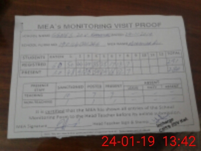 | Attendance Register | Head Teacher | MEA with School | Visit Proof |