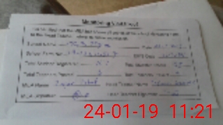 | Monitoring Date: 24-01-2019 | Start Time: 24-01-2019 10:46 AM | End Time: 24-01-2019 11:21 AM | Name of MEA: Za**** Iq**** BN**** | |