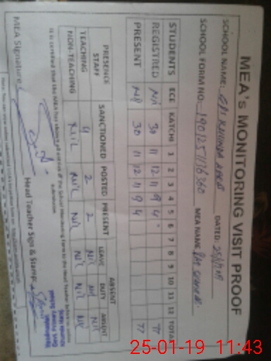| Attendance Register | Head Teacher | MEA with School | Visit Proof |