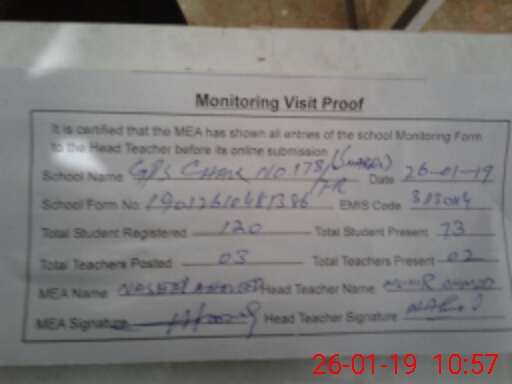 | Certified that this School was Inspected by the Undersigned MEA/DMO Today and the Information Stated Above is as Per Record. | |||||