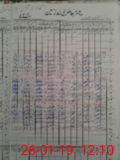 | CNIC | Full Name | Designation | R/C | Absence During Last Calender Month |