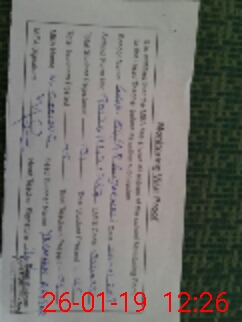 | Monitoring Date: 26-01-2019 | Start Time: 26-01-2019 11:43 AM | End Time: 26-01-2019 12:26 PM | Name of MEA: MU**** SI**** BN**** | |