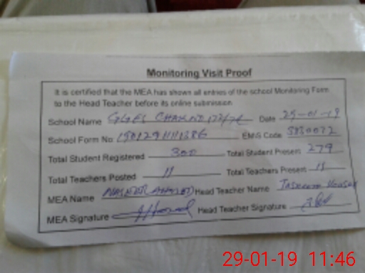 | Attendance Register | Head Teacher | MEA with School | Visit Proof |