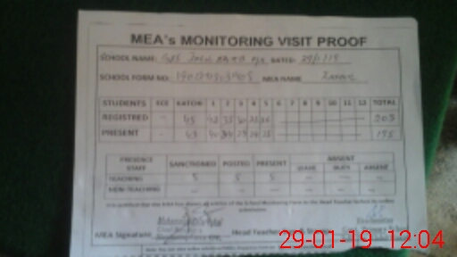 | Attendance Register | Head Teacher | MEA with School | Visit Proof |