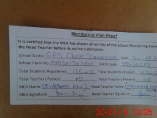 | EMIS Code: 35430289 | Name of School: GPS CHAK DAMOANA | |||