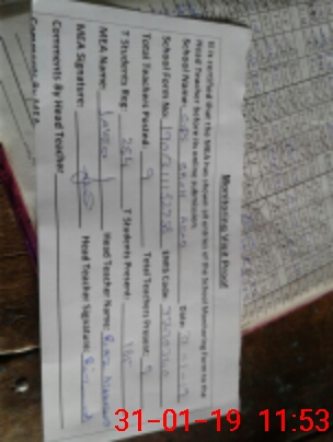 | Attendance Register | Head Teacher | MEA with School | Visit Proof |