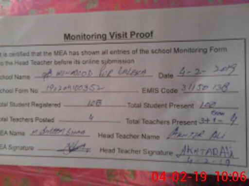 | EMIS Code: 31150138 | Name of School: GPS MEHMOOD PUR LALAY KA | |||
