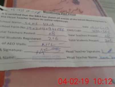 | Certified that this School was Inspected by the Undersigned MEA/DMO Today and the Information Stated Above is as Per Record. | |||||