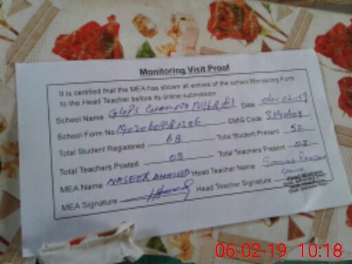 | Certified that this School was Inspected by the Undersigned MEA/DMO Today and the Information Stated Above is as Per Record. | |||||
