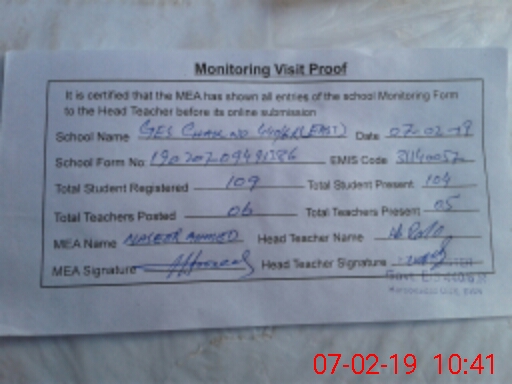 | EMIS Code: 31140057 | Name of School: GES CHAK 440/6-R EAST | |||